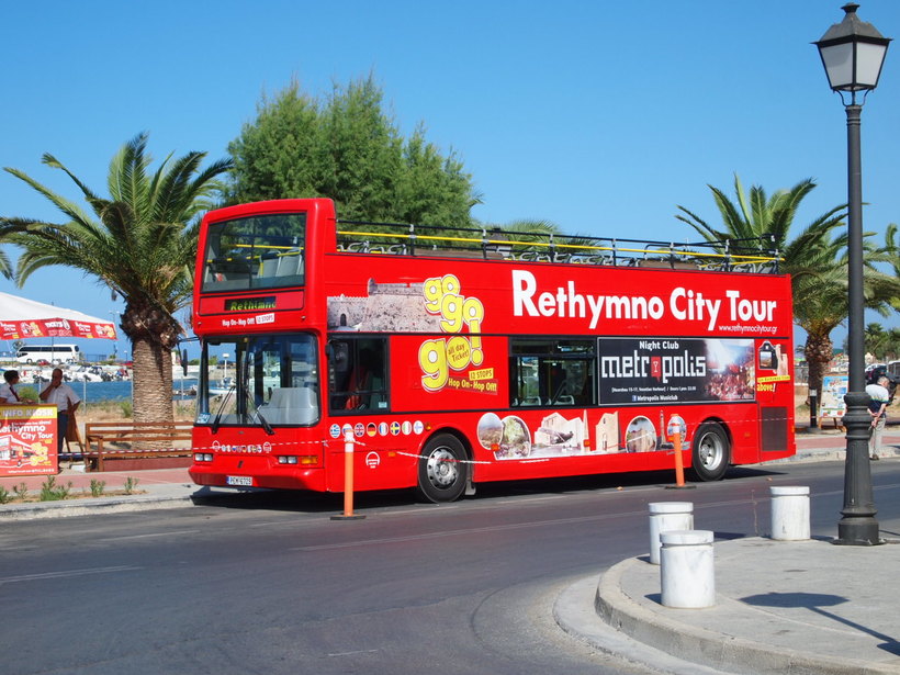 Также здесь ходят экскурсионные автобусы. Если вы хотите посмотреть весь город и его окрестности, отличный способ — это Retimno Сity Tour. Выглядит он вот так: