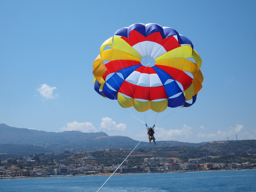 На центральном пляже можно покататься на банане, водных лыжах, таблетках или заняться парасейлингом. Это такой вид отдыха, когда человек парит в воздухе на специальном парашюте, который крепится к катеру.