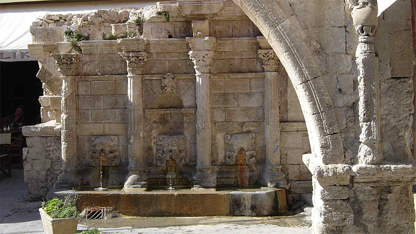 - Фонтан Римонди (Rimondi) 1626 года. Это самый старый фонтан на острове Крит. Название пошло от фамилии венецианского губернатора, благодаря которому это сооружение появилось. Вода в фонтане стекает из четырех львиных голов, высеченных из камня. Сверху на фасаде можно увидеть латинскую надпись LIBERALITATIS FONTES, что переводится как «щедрый родник».