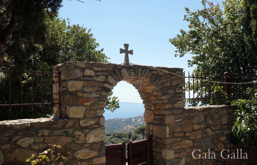 На переднем плане видна крыша церкви Святой Марины. По центру фотографии — церковь Святого Николая. Из старых строений сохранились еще стены мечети, но ее восстанавливать в православной Греции никто не стал. На фото ниже — вид с самой высокой точки Кастро. Отсюда хорошо было видно всех, кто пытался атаковать островитян с моря. А в хорошую погоду, говорят, отсюда видно гору Афон.