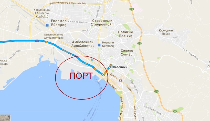 В порт в Салониках можно попасть, проехав через город или по объездной до набережной, где его сразу будет видно.