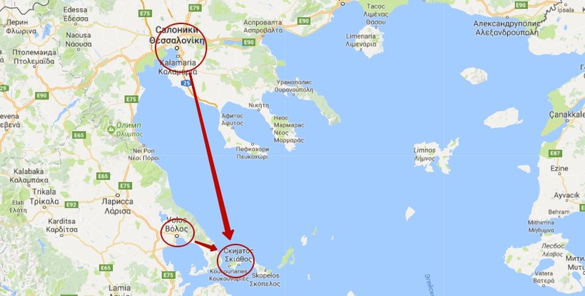 Если вы едете в Грецию на автомобиле, то, наверное, удобнее будет доехать до порта в Волосе, сам порт находится дальше, в глубине Греции, но зато паром до Скиатоса оттуда идет всего 1,5 часа.