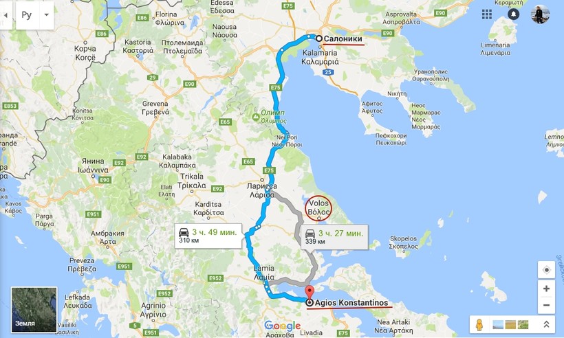 Автомобилем до Волоса или порта Константин
