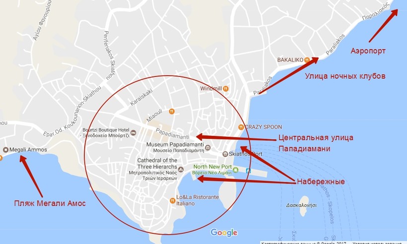 И в заключение я скажу вещь банальную для путеводителей, но от того она не становится менее правдивой в отношении Скиатоса: какое бы жилье вы ни выбрали, в какой бы части острова ни поселились, вы все равно получите удовольствие от отдыха в этом прекрасном месте. Здесь повсюду потрясающие виды, чистое голубое море, свежая зелень, воздух, который наполняет энергией. Главное — помните, что, несмотря на то, что я выделила на карте восемь районов, все они очень близко относительно друг друга, так как остров очень небольшой, и что стоит посетить хотя бы несколько пляжей и обязательно хотя бы раз погулять в горах. Только не забывайте пользоваться картами острова, чтобы не заблудиться.