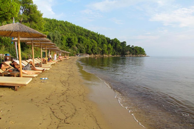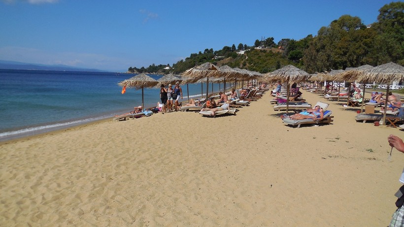 Автобусная остановка № 20 (начало зоны №7). Пляж находится ниже уровня дороги. И непосредственно на самом пляже нет ни отелей, ни ресторанов. Только небольшая таверна, зонтики и шезлонги. Чтобы попасть на пляж нужно спуститься по достаточно крутой тропинке вниз. Но если для вас это не проблема, то вы не будете разочарованы, пляж стоит того — чистая прозрачная вода, золотистый песок и много зелени. Учтите, правда, что вся эта зелеь в определенные часы может создавать тень на пляже. Ближайший отель — Skiathos Palace — еще один четырехзвездочный отель с большим номерным фондом (более 200 номеров), что для Скиатоса редкость. Главный минус этого района заключается в том, что здесь нет никаких развлечений вообще — ни ресторанов, ни кафе, ни баров, ни живой музыки по вечерам. Так что если вы желаете вечером сидеть в тишине с бокалом вина, вдыхать запах сосен и созерцать море, то это место для вас.