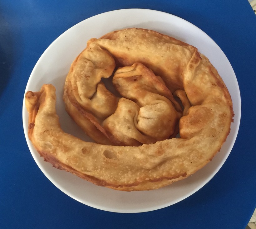 Местное блюдо скопелитики — что-то вроде улитки с мясом, с творогом или с сыром. Считаются блюдом to go. Но на самом деле они огромные и очень жирные. Продаются во многих заведениях острова.