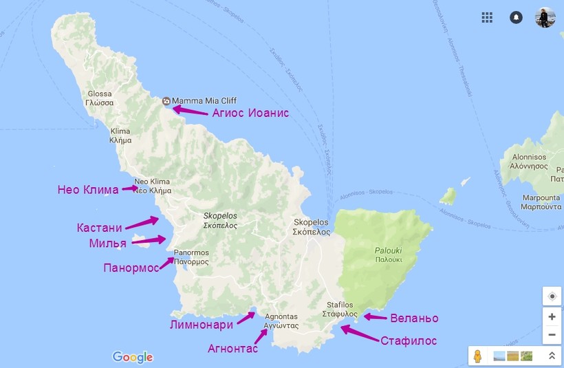 Другие пляжи, каждый из которых достоин внимания, предлагаю вам изучить самостоятельно. Обратите внимание на пляжи Веланьо, Лимнонари и не ограничивайтесь этим. Большая часть пляжей галечная, вход и дно везде очень хорошие. Исключение, может быть, Нео Клима и пляжи севернее этого пункта — здесь под водой могут встречаться довольно крупные камни, но в целом пляжи Скопелоса очень комфортные, хотя далеко не всегда оборудованные.
