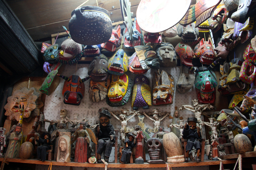 - Маски. Будучи в Гватемале, я всерьез заинтересовалась культурой ношения масок и даже приняла решение собрать небольшую коллекцию у себя дома. Маски издавна были неотъемлемой частью местных ритуалов — в Гватемале их надевают во время танца, поэтому ни один праздник не представляется возможным без них. Жуткие или добрые, изображающие людей и животных, маски олицетворяют персонажей из майяских легенд и реальной гватемальской истории.