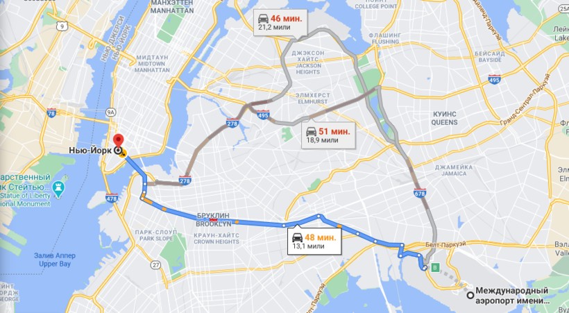 - До центра Нью-Йорка: