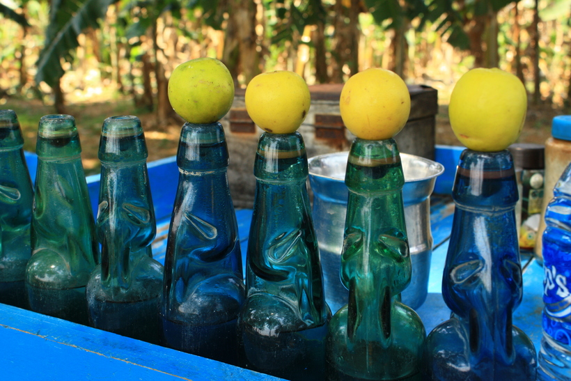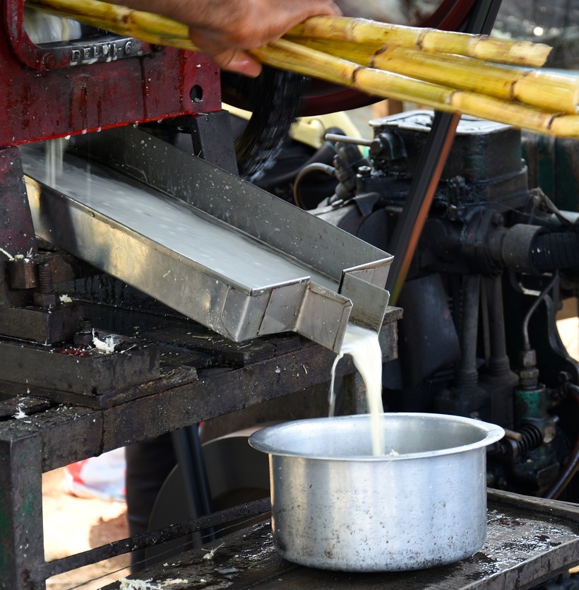 - Тростниковый сок. Вдоль дорог можно увидеть машинки с колокольчиками, которые пропускают через пресс стебли тростника. Полученный сок смешивают с лимоном и продают по0,2$ (10 рупий) за стакан. Свежий и приятный напиток.