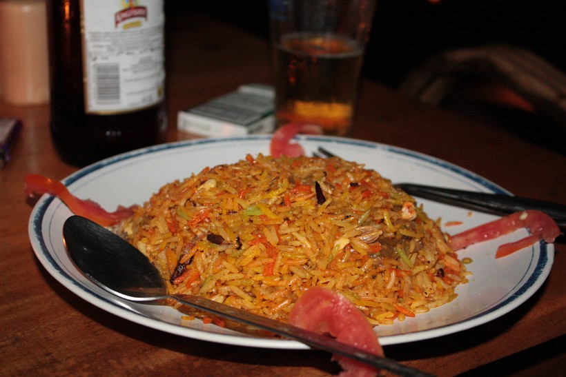 - Бирияни. Восхитительный плов из ароматного риса басмати. В его состав входит множество душистых специй. Внутри рассыпчатого риса спрятался соус и кусочки томленого мяса. Готовят бирияни с овощами, морепродуктами, бараниной или курицей. Подают к нему райту – лук, огурцы, помидоры, залитые домашней простоквашей. Лучше всего бирияни готовят в кафе, которые держат мусульмане.