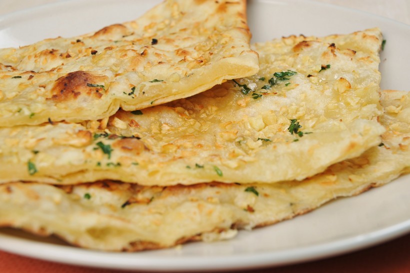 - Чиз гарлик наан. Самое любимое блюдо у русских туристов. Если вам надоела еда со специями, хочется чего-то более простого и понятного, берите наан. Это лепешка из пшеничной муки, запеченная в печи тандури. Самый вкусный вариант готовится с добавлением сыра и чеснока. Может выступать как самостоятельное блюдо или просто как хлеб.
