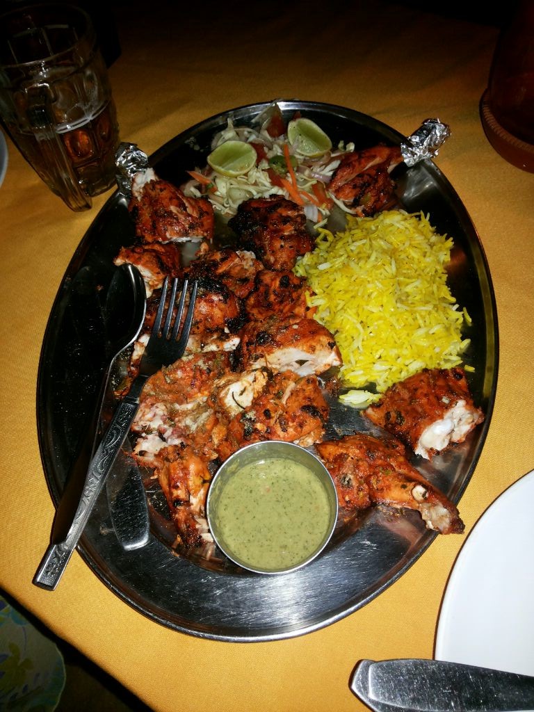 - Курица тандури. Если в кафе вы увидите огромные шампуры, на которые нанизана красная курица, значит, здесь готовят самый вкусный вариант шашлыка. Только вместо мангала используется печь тандури. Заранее курица (или мясо) маринуется в домашнем йогурте, чесноке, имбире, специях. Затем накалывается на длиннющие шампуры и отправляется в печь. Через какое-то время перед вами появляется нежнейшее пряное мясо. Подается с невероятным мятным соусом!
