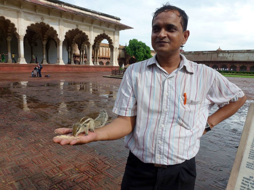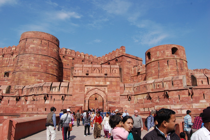Форт Агра. В 2,5 км от Тадж-Махала на север расположен Агра Форт, или Красный Форт. И хоть кажется, что идти совсем не далеко, лучше проехать это расстояние на рикше или такси. Это вторая по значимости достопримечательность Агры, в которой стоит провести пару часов.Вход стоит 500 INR, но если сохраните билет из Тадж-Махала, то вам сделают скидку 50 INR. На входе в форд будьте аккуратны, очень много обезьян, которые могут вырвать любую понравившуюся вещь. Особенно сильно реагируют на блестящие серьги в ушах, цепи и очки.Я советую почитать заранее историю этого места, распечатать небольшой путеводитель, либо нанять гида, потому что в форде очень много различных залов и помещений. Если вы знаете английский и хотите сэкономить, то можно идти в небольшой удаленности от организованной группы туристов и подслушивать их гида. Обязательно поднимитесь на башню Мусамман-Бурдж, где, по легенде, провел в заточении последние годы своей жизни Шах-Джахан, с видом на Тадж-Махал.Форт имеет форму полукруга и занимает площадь более 91 гектара, но большая часть закрыта для посещения туристов и используется в военных целях. Во внутренних двориках расположились прекрасные зеленые сады.На лужайках парочки индусов и целые семья устраивают мини-пикники.