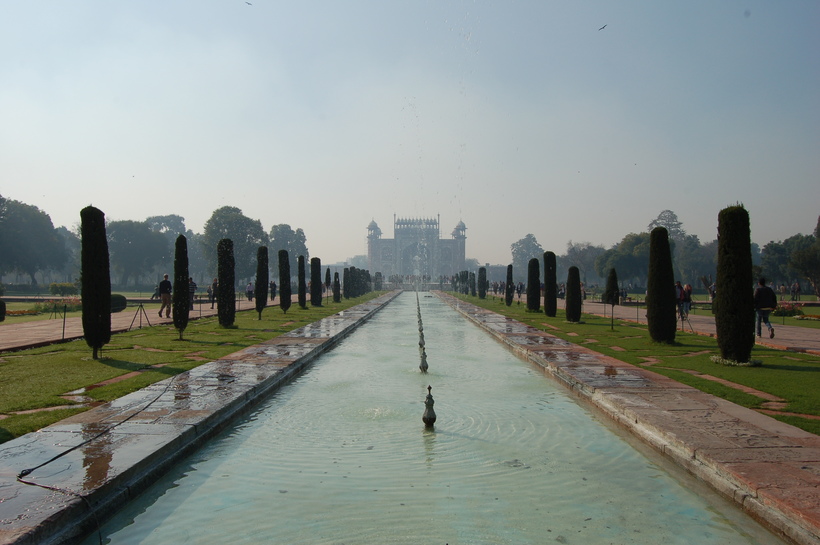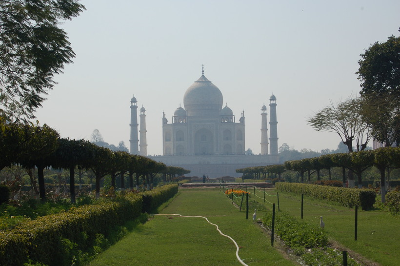 Тадж-Махал. Визитная карточка Индии, восьмое чудо света, самое главное архитектурное творение человека — все это о Тадж-Махале. Я приезжала к самому открытию, но даже в такое раннее время людей было достаточно много. В основном это местные жители, которые создают своими пестрыми одеждами особый колорит на фоне белоснежного мрамора. Правда этим же затрудняют процесс фотосьемки, на 9 из 10 фотографий обязательно присутствует чья-то голова. Кстати, на территорию нельзя проносить штативы.Вход для иностранных туристов стоит 15 USD (1 000 INR), вместе с билетом выдают бахилы и бутылку воды. Бахилы нужно одевать при подъеме на площадку, на которой расположен мавзолей и входе в сам мавзолей. И не слушайте, тех, кто говорит, что Тадж-Махал не производит особого впечатления. Несмотря, на то, что минареты скрыты строительными лесами, этот памятник любви и чудеса строительного мастерства просто поражают воображение.Со стороны Тадж-Махала открывается вид на центральные ворота, через которые попадаешь на территорию.Вход открыт ежедневно с 6:00 до 19:00, кроме пятницы. За два дня до и два дня после полнолуния мавзолей открыт в вечерние часы — с 20.30 до полуночи. На территории есть музей, о котором я расскажу ниже, в соответствующем разделе.