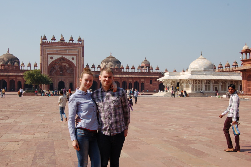В 30 км на запад от Агры распложен Фатехпур-Сикри — столица империи Великих Моголов на протяжении 14 лет. Если поедете из Агры или Джайпура на машине, то советую сначала заехать сюда. Город был возведён императором Акбаром в период с 1571 по 1585 год, в честь святого предсказателя. Фатехпур-Сикри — уникальный образец монгольского города, который сохранился до наших дней. На территории города находятся гробница святого предсказателя Салима Чишти и храм Джама Масджид, а также частные и общественные здания. Гробница стала местом вероисповедания для многих верующих, но из-за недостатка воды, как и город, была заброшена, а спустя время и разграблена.