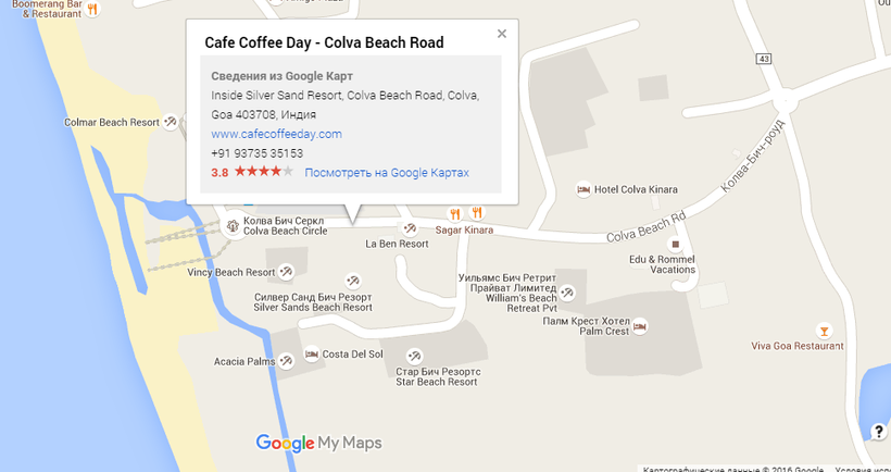 Тем не менее, в Колве есть несколько заведений, которые расположены прямо на пляже, но считаются обычными кафе, а не шеками, поэтому они открыты почти круглый год.