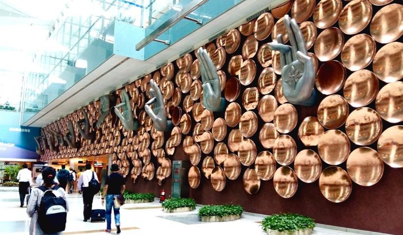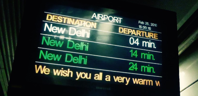 Метро работает с 6:00 утра до 23:00 вечера. Очень удобно, что поезд идет прямо из аэропорта и отходит каждые 15 минут. Жетон стоит 1.2 USD / 80 INR, и сохранять его необходимо до конца поездки. На выходе жетон следует опустить в прорезь автомата, чтобы открылся турникет и выпустил вас.