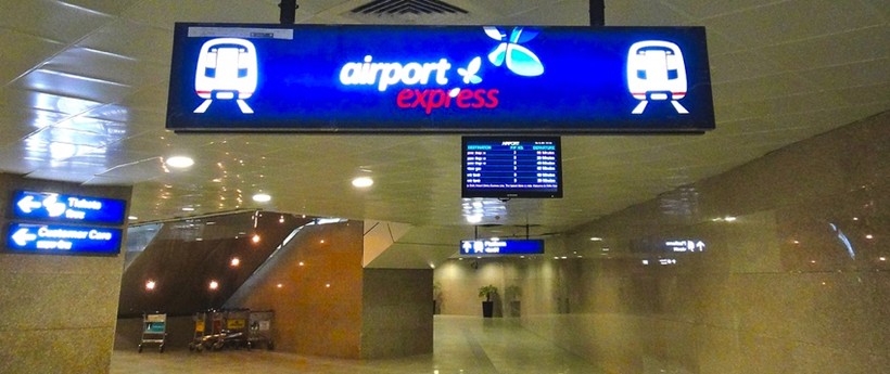 Если мы прилетаем утром или днем, мы вполне можем добраться в город на комфортабельном и скоростном метро. Указатель на метро Airport Express расположен в зале прилета.
