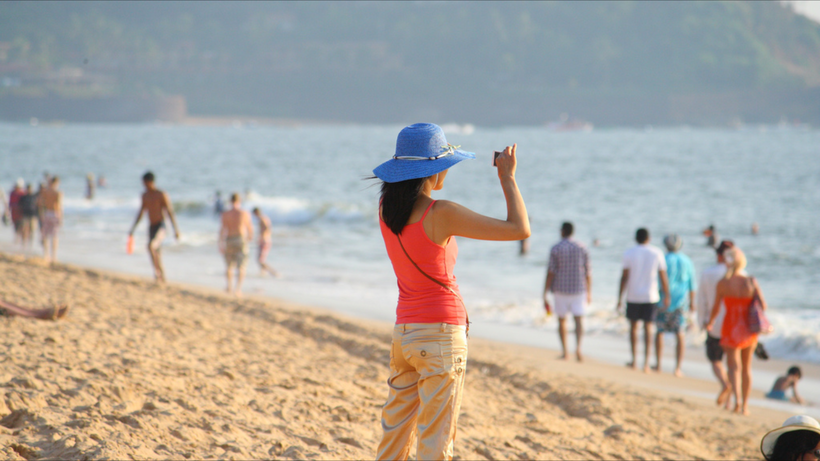 По сравнению с пляжем Калангута здесь немноголюдно. Основную часть публики составляют туристы из Европы, состоятельные индийские путешественники и наши соотечественники, приехавшие в Гоа с «пакетным отдыхом» в престижном отеле. Вдоль всего побережья разбросаны многочисленные кафе-лачуги, так называемые «шэки». В них посетителям предлагают блюда на любой вкус и прохладительные напитки. Рыбаки из Европы пробуют удачу в местных водах, улов с радостью берутся приготовить повара пляжных ресторанчиков.