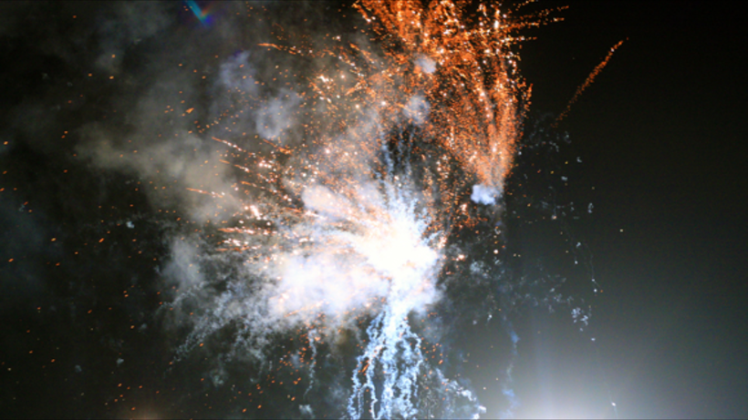 В новогоднюю ночь небо над морем в районе пляжа Кандолим окрашивается фейерверками.