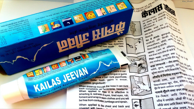 Пасту грязно-белого цвета очень любят поклонники индийскойдревней медицины. Аюрведа рекомендует мазь "Кайлаш" как срадство от простуды, насморка, сухих пяток, ожогов и коньюктивита. Маленький обьем мази стоит около $0.6 (45 рупий). При любых проблемах со здоровьем я советую в первую очередь полагаться на докторов общей практики, а потом уже на индийкие "чудо-зелья".