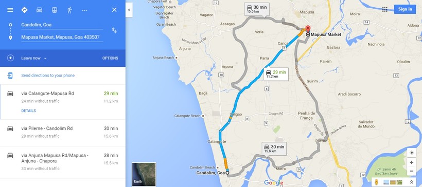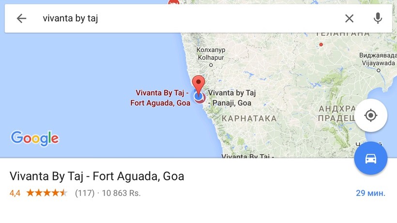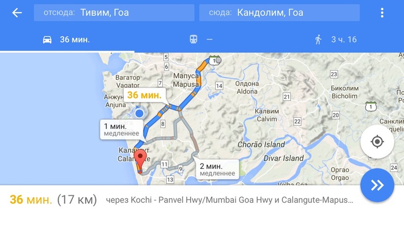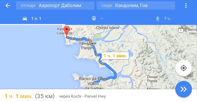Цена на поездку из аэропорта в Кандолим у обоих такси одинакова. Путь в машине без кондиционера стоит $15 (945 рупий), авто с кондиционером обойдется чуть дороже – $16 (1080 рупий).
