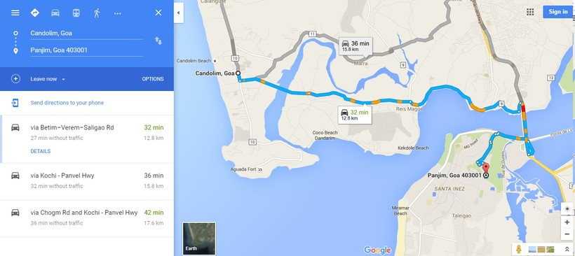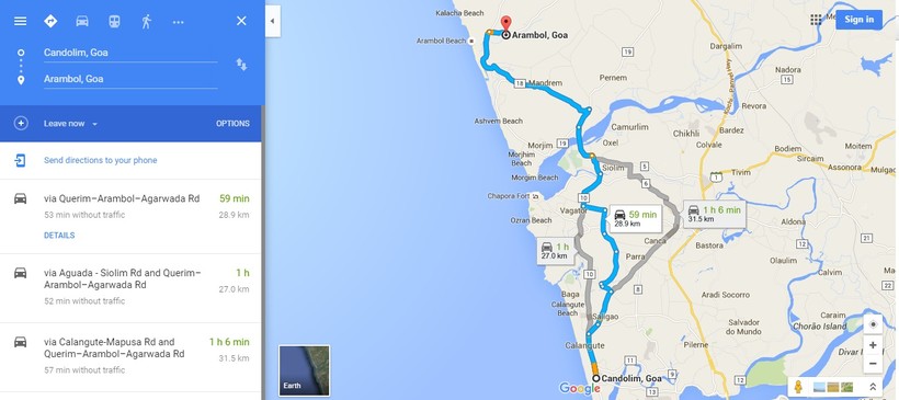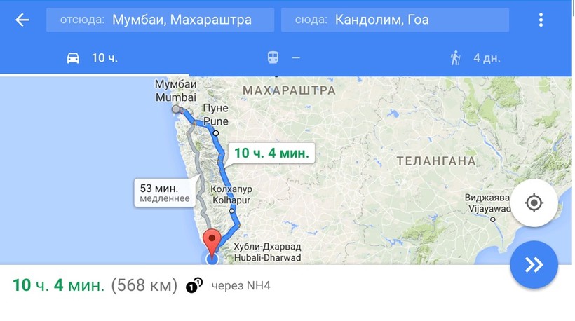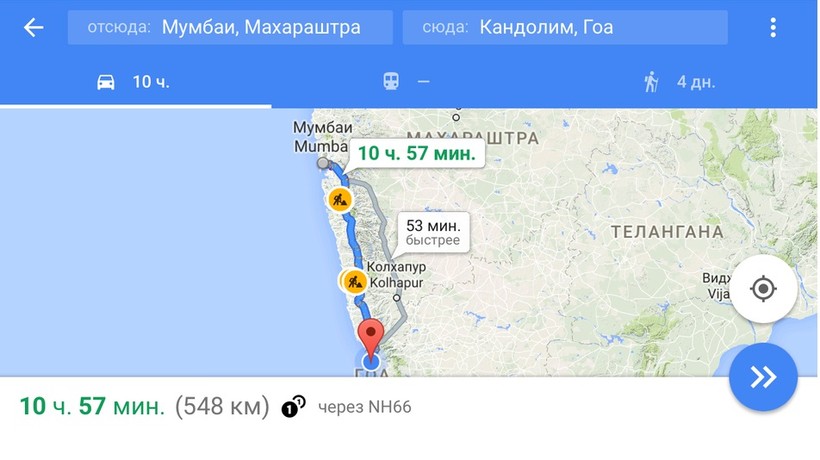 Если вам «повезло» путешествовать в Гоа из других городов Индии на автомобиле, приготовитесь к экстремальному вождению без правил, к неожиданным ситуациям на дорогах, платным трассам и бездорожью. Расстояние от Мубайя до Кандолима по трассе NH4 составляет 568 километров, среднее время в пути — 10 часов 30 минут.