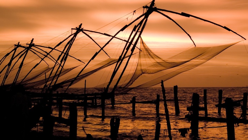 - Китайские сети в Кочине. В самом уютном городе Керале Кочине есть особый вид рыбалки, который можно увидеть только здесь. Китайские сети – один из главных аттракционов города, они расположены у набережной Махатма Ганди. Считается, что технология ловли рыбы сетями была завезена в Индию китайцами в 1350 г. Конструкция состоит из огромной сети, которая по периметру прикреплена к палкам. С помощью рычага консоль опускается и поднимается из воды. Весь механизм имеет внушительные размеры, а для работы требуется до 6 рыбаков. Местные давно превратили это в развлечение для туристов, они зазывают гуляющих по набережной, рассказывают истории и дают каждому побыть кочинским рыбаком за небольшое вознаграждение. Мне сети очень понравились, необычное зрелище и прекрасные фотографии. А вдоль набережной продается улов из китайских сетей – все виды местных морепродуктов и рыбы.