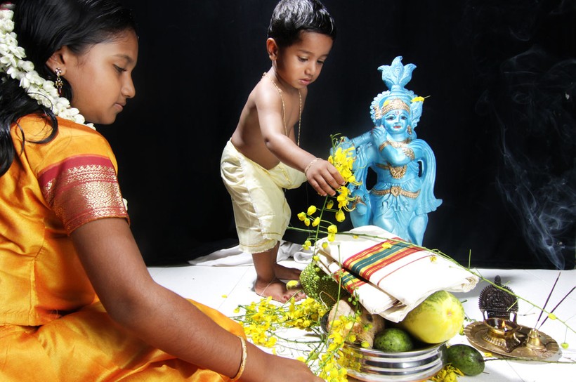 - Вишу. Это местный вариант Нового года, отмечаемый в первый день января по малаямскому календарю. Вишу традиционно отмечают в Южной Индии: в Тамил-Наду и Керале. Праздник проходит в апреле и связан со сбором урожая. Накануне праздника старшая женщина в семье готовит специальные подношения богам – вищуккани, которые ставятся на семейный алтарь. В храмах служат пуджу. В день Вишу индуисты встают с рассветом, с закрытыми глазами проходят к алтарю, считает, что вищуккани должно быть первым, что человек увидит с утра. После этого принято читать Рамаяну. Во многих храмах проходят обряды, главные паломнические центры Кералы – храм Кришны в Гуруваюре и храм Айяппы в Сабаримале. Вечером запускают фейерверки.