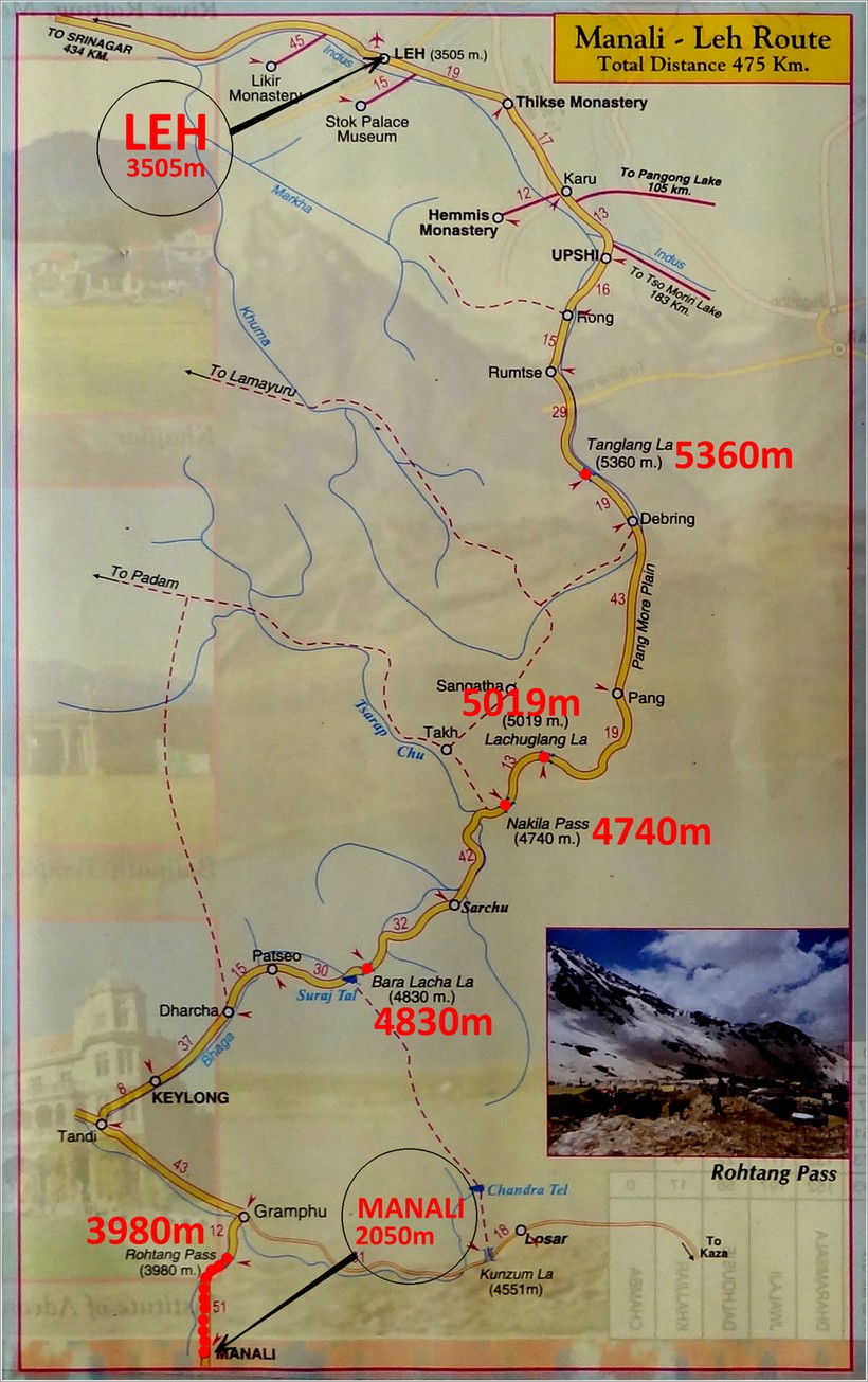 Город Лех находится на высоте 3500 метров над уровнем моря. Любой альпинист скажет вам, что высоту лучше всего набирать постепенно. Не раз встречал людей, прилетевших в Ладакх на самолёте и первые 2 дня еле передвигавших ноги, а то и просто лежащих пластом в номере из-за настигшей горной болезни. А дорога на автотранспорте (с плавным набором высоты, ночёвками и осмотром достопримечательностей в промежуточных пунктах) займёт у вас минимум 2-3 дня, что позволит организму акклиматизироваться.