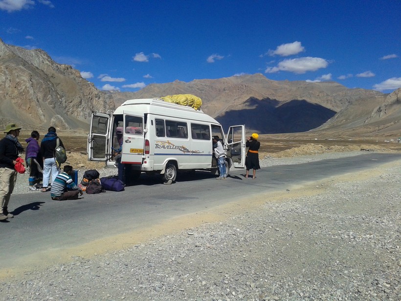 Коммерческие минибасы выезжают из Манали в 2-3 часа ночи, а приезжают как повезёт (учитывая ремонт дороги, сход лавин и вызванные этим пробки на серпантине). Обычно 15-20 часов пути. Цена колеблется от 20 до 30 USD (1200-2000 INR) в один конец. Если едите большой компанией, то можно арендовать джип целиком вместе с водителем (от 300 USD за машину) и останавливаться для фото где душа пожелает.