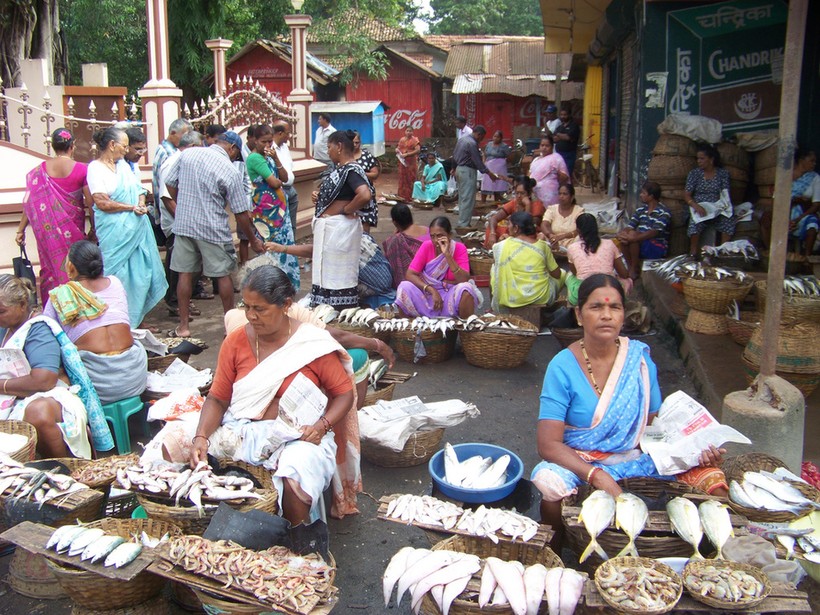 Помимо фруктов и овощей на рынке можно прикупить и наисвежайшей рыбки, которая буквально пару часов назад стала добычей местных рыбаков. В сезон дождей в Гоа стоимость на морепродукты повышается, поскольку малая часть рыбаков отваживается выходить в море, когда непогодится. Зато с октября по апрель здесь настоящий рай для гурманов и для любителей свежей вкусно приготовленной рыбы и других морепродуктов.