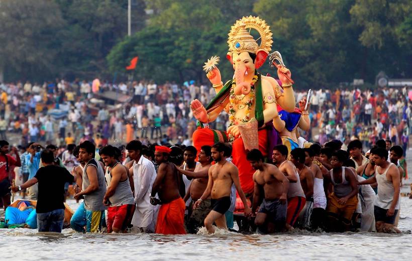 Один из любимейших индуистами праздников – день рождения бога Ганеши. Отмечается во многих штатах Индии, но в Мумбаи с особым размахом. Фестиваль также длится десять дней, в течение которых нужно соблюдать вегетарианский пост. Праздник проходит в августе-сентябре. В начале праздничной декады люди покупают гипсовые фигурки Ганеши. Разукрашивать их приходится самостоятельно вручную. Все десять дней Ганешу наряжают, посыпают цветами, кормят лучшими сладостями и поят молоком. В последний день все индуисты относят свои фигурки к морю и опускают их в воду. В Мумбаи, население которого очень велико, в этот день на пляжах просто не протолкнуться. Из дома фигурку Ганеши выносят под музыку и танцы, на улицах устраивают целые процессии до пляжа. Поэтому движение на дорогах просто парализовано. Под песни, чтение мантр и бой в барабаны Ганеша отпускают в плавание. Потом еще несколько дней вода в море имеет необычный цвет, а весь берег усеян статуэтками бога-слона.