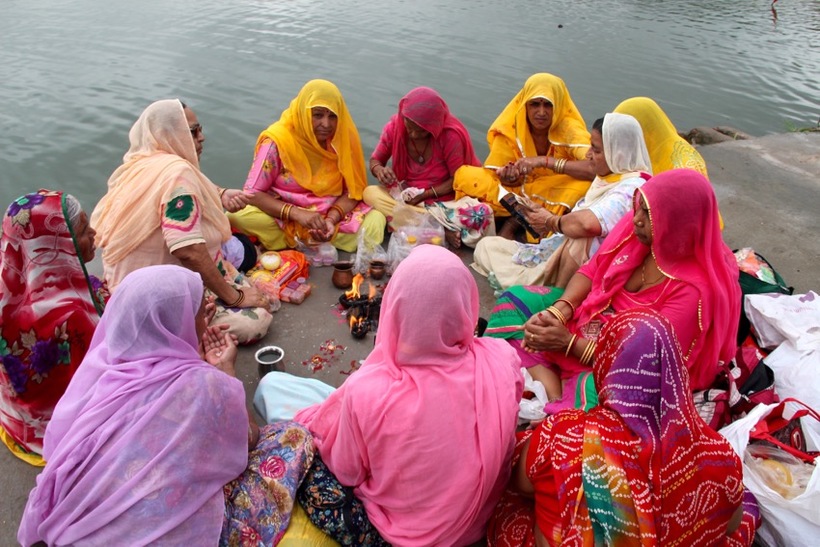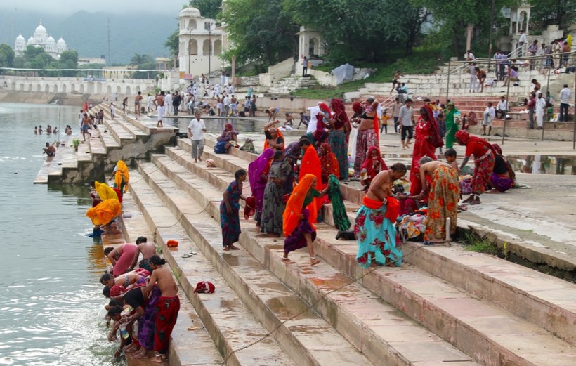 Они будто объединяются в одно неповторимое архитектурное кольцо, обрамляя все озеро. И все это аутентичное великолепие напоминает миниатюрные сказочные декорации на съемках фильма про древнюю религиозную Индию. Сотни паломников стекаются со всей Индии совершить омовение в этом озере, получить благословение и опустить на воду лодочки из листьев со светящимися глиняными лампадками.