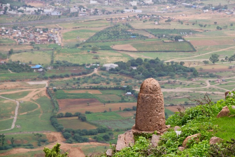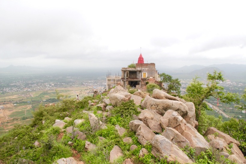 С вершины горы, на которой построен храм, открывается вид на две долины вправо и влево, в одной из них лежит Пушкар, в другой — город Аджмер. От храма между камней стелется тропинка и ведет на большое горячее каменное плато.