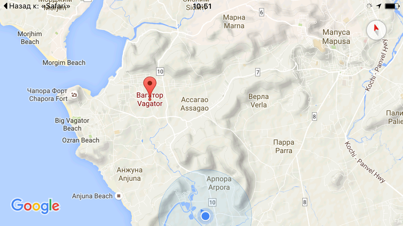 Вагатор находится в 42 километрах от единственного в штате Гоа аэропорта Даболим. Ознакомиться с вариантами перелета и ценами можно тут. После выхода из зала получения багажа советую обратиться к стойкам заказа такси. Две из них находятся в помещении аэропорта слева от выхода из здания, еще две снаружи здания, справа от входа.
