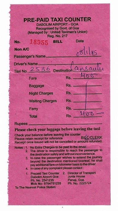 Договариваясь с таксистом, ориентируйтесь на $7 (500 рупий). Или попросите водителя показать «прайс-лист» и оплатите проезд по нему. Каждый гоанский таксист обязан иметь такой ценник в своем авто, цифры на нем берутся не «с потолка», а устанавливаются профсоюзом таксистов в Гоа.