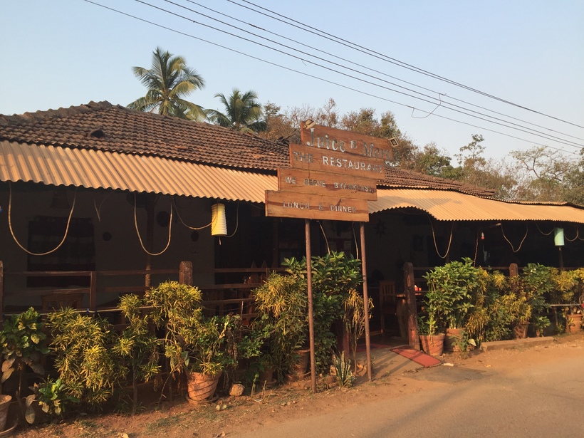 Кроме семейных историй, в меню ресторана имеются свежевыжатые соки по цене от $0,6 (40 рупий) за стакан. Из еды – индийские блюда, традиционный обед тали и вариации на тему европейской кухни. Очень недурны бургеры и сэндвичи, рекомендую томатный суп – здесь его подают со сливками и сухариками $0,9 (60 рупий). В кафе не продают алкоголь, но Джули разрешит вам принести свою выпивку при условии заказа еды. Кроме того, местный повар за скромную плату приготовит морепродукты, купленные вами на рыбном рынке. Среди клиентов заведения много европейцев-долгожителей, коротающих в Гоа свои земные денечки.