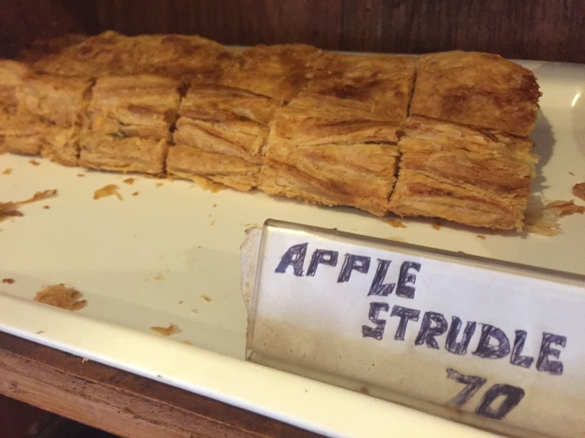 Здесь можно купить отличные вегетарианские пирожки петис всего за $ 0,15 (10 рупий). Подороже с цыпленком – за $0,45 (30 рупий), столько же стоят слойки с картофельным пюре и фетой. Вкусны круасаны с сыром или шоколадом – от $0,8 (50рупий). Мое особое почтение яблочному штруделю за $1 (70 рупий).