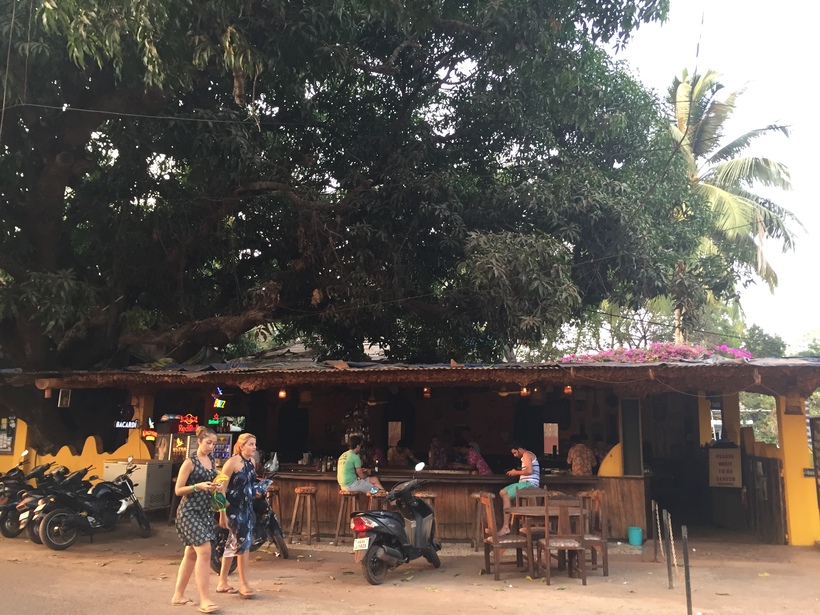 Бар спрятался под кроной огромного дерева мангового дерева на самом близком к пляже перекрестке Вагатора.