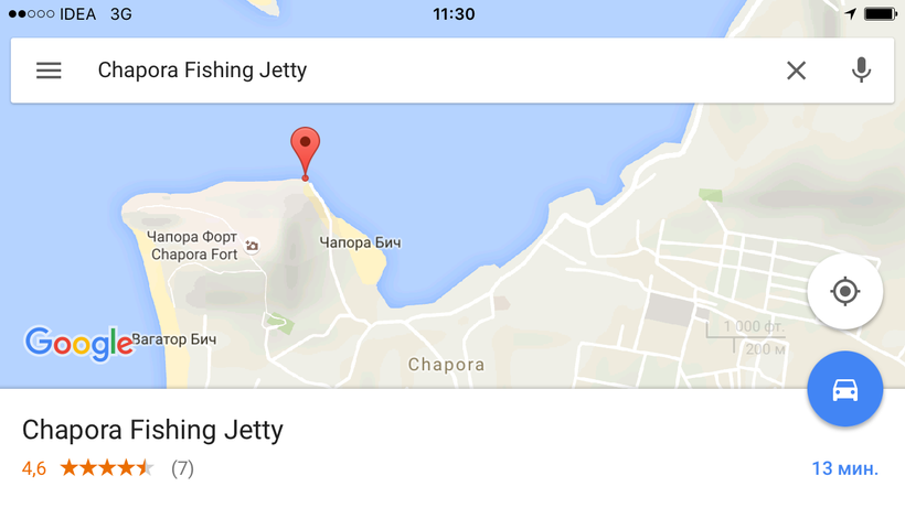 Нашему товарищу стоит отправляться на Вайт Рокс рано утром, пока царит прохлада, а возвращаться сразу на закате солнца. После наступления темноты тропинка, ведущая к пляжу через скалы, становится неприятным испытанием. Во время сильного отлива море отступает и открывает путь на северный склон форта Чапора. Это единственный шанс добраться со стороны моря посуху к красивому индуистскому храму, спрятавшемуся в устье реки Чапора.