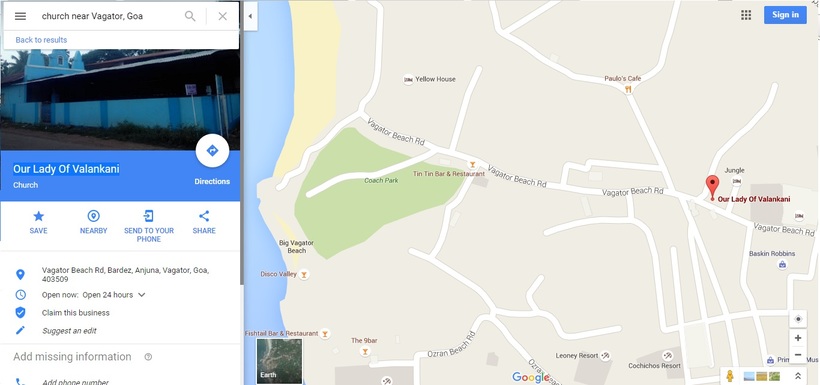 Муж решил рискнуть, и тем же вечером отправился играть в местную лотерею, которая называется "Матка". Он поставил скромную сумму на цифру 72. На выигранные с "божьей помощью" деньги нам удалось купить машину! Не верите? Приезжайте в Гоа, обязательно покатаю. Церковь расположена неподалеку от бара "Манго Три".