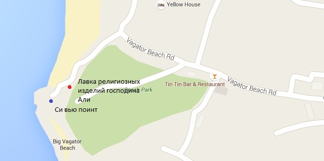 Северный спуск на пляж Смол Вагатор начинается у «Си-вью поинт». После автобусной станции нужно идти за толпой туристов. В левом ряду палаток ищите проход на лестницу, ведущую вниз.