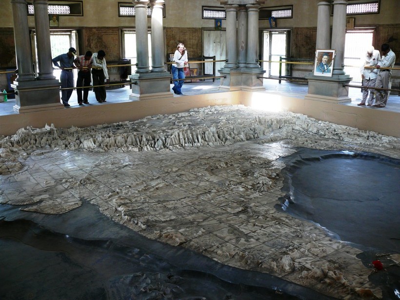В центре помещения на полу находится мраморная экспозиция, отображающая Индию в точных пропорциях со всеми ее горами, реками и равнинами. Громадная карта из натурального камня олицетворяет величие и единство страны, именно такой ее хотел видеть Ганди.