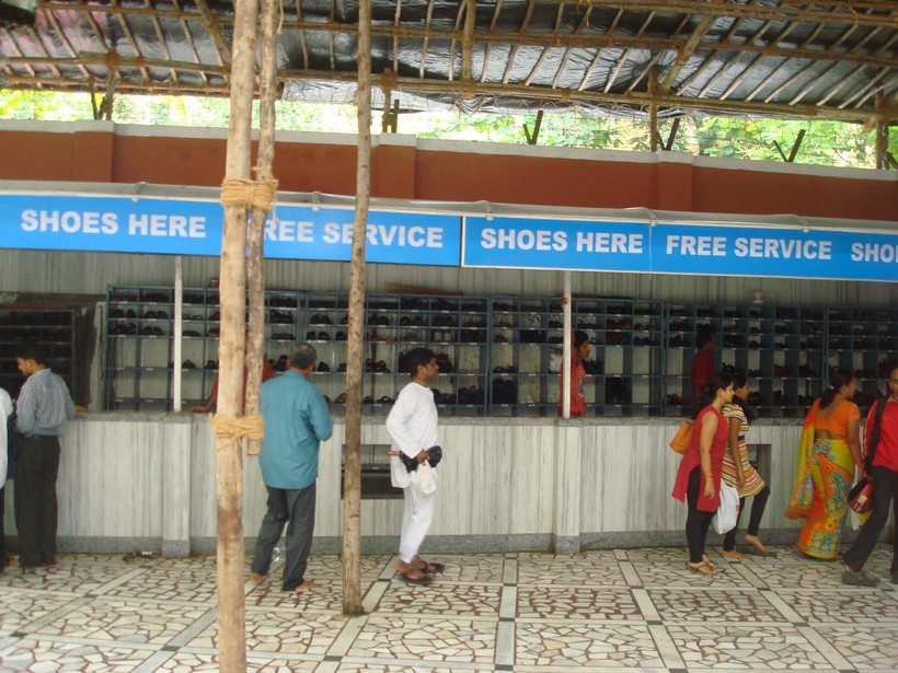- В индуистский храм нельзя заходить в обуви. Перед входом всегда есть специальная «обувница» – полочки, охраняемые работником храма. При выходе и получении своих тапочек работник обязательно попросит у вас вознаграждение: 0,15 $ (10 рупий) обычно хватает за одну пару. Можно оставить обувь и просто в стороне возле ступенек, но тогда за ее сохранностью будут следить только боги. Вспомните фильм «Миллионер из трущоб», где предприимчивые ребята сделали целый бизнес на ворованной в Тадж Махале обуви. Имейте в виду, что в храм нельзя не только входить в обуви, но и с собой ее брать тоже запрещено. Это будет знаком крайнего неуважения. Если кто-то из служителей увидит у вас в сумке или в руках обувь, вас тут же выгонят.