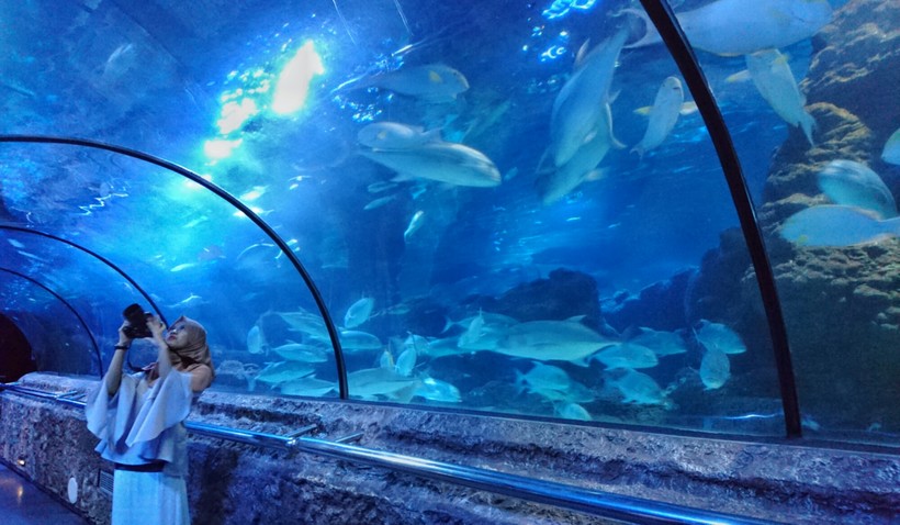 Мне даже трудно предположить сколько нужно времени, чтобы обойти весь парк — он невероятно огромный. Поэтому я заранее выделила для себя части парка, в которые пойду в первую очередь, а оставшиеся — как хватит сил. В каком бы городе я не была, если там есть океанариум, то для меня посещение обязательно. Вход в парк стоит 1,5 USD (20 000 IDR). Я купила один билет на шоу животных и морской мир, вышло 15 USD (200 000 IDR). Если брать по отдельности, то выйдет дороже. Океанариум действительно стоящий, с длинным туннелем, в котором можно понаблюдать за акулами и разнообразными рыбами. Я была в будний день, людей достаточно много, так что в выходные будет с трудом протолкнуться.