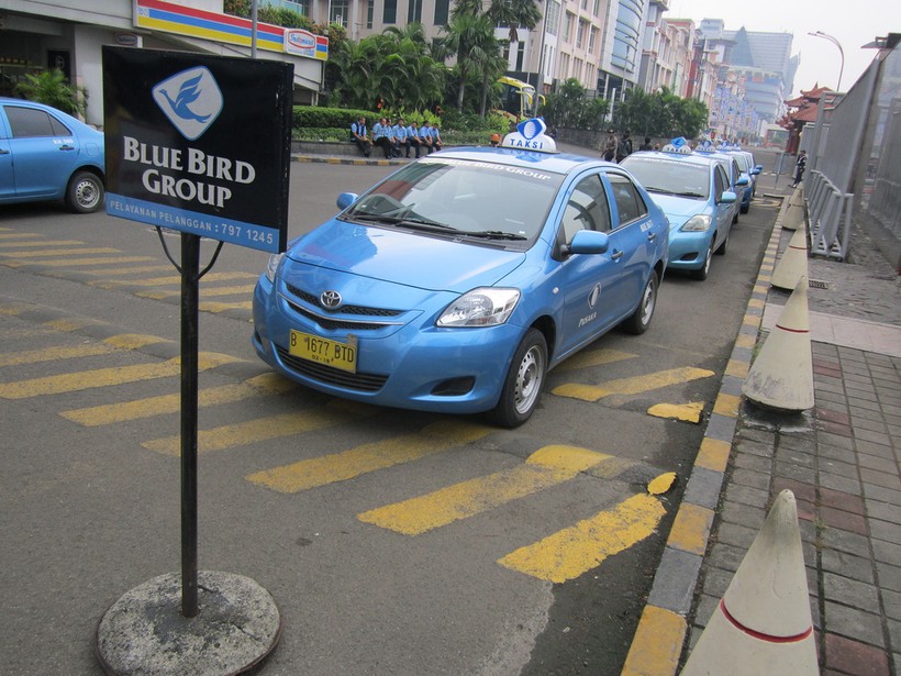 Такси в Джакарте очень доступно, все они яркого цвета, но различают только два вида: обычные и премиум. Я всегда пользовалась такси Blue Bird. Цена поездки складывается из расчета 6 тыс. за первый километр, далее по 300 рупий за 100 метров или 1 мин.в пробке. У них есть свой сайт, где можно ознакомиться с разными видами услуг по перевозке. Вне зависимости от того, такси какой фирмы вы выберете, ездите только по счетчику. Советую всегда иметь при себе визитку вашего отеля с адресом и карту достопримечательностей. Так будет проще вашему водителю сориентироваться, ведь если он увезет вас не туда или намотает крюк, оплатить придется всю поездку.