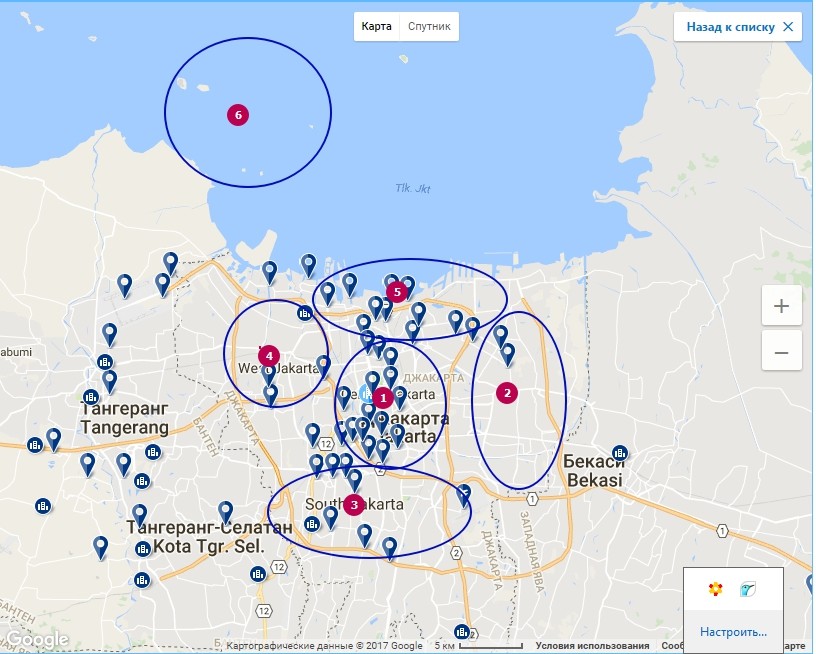 Это единственный район Джакарты, граничащий с морем. Здесь находится самый большой развлекательный парк Индонезии. На пляжах я не была, но наслышана об их непривлекательности. Покупаться не удастся. В этом районе расположился и единственный хостел Teduh Hostel 1*. Другие виды жилья можно найти за 10-30 USD.
