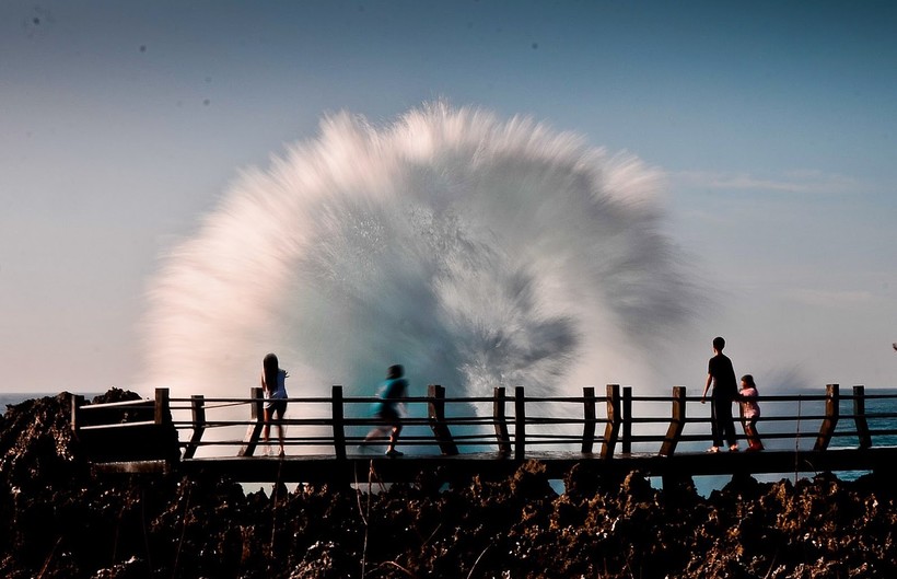 Место в области Nusa Dua Beach, которое называется «Water Blow» (Удар воды), является горным образованием, где волны, сталкиваясь с каменной стеной, создают гигантский всплеск, как будто вода взрывается. Water Blow находится на полуострове Нуса-Дуа на пляже Nusa Dua Beach к северу от отеля Grand Hyatt Hotel. Эта удивительная достопримечательность находится на дальнем краю полуострова, на котором проходят крупные мероприятия, такие как фестиваль Нуса-Дуа, выставки мирового класса и другие международные события. В этой области находятся скалы, на которых построено здание с открытой крышей. Необычным явлением Water Blow является то, что в скале, лицом к лицу с Индийским океаном, есть большое сужение. Когда волна подходит и ударяется о скалу, она оказывается пойманной в этом сужении и врезается в вершину. Издалека это выглядит как огромная белая пена, танцующая на вершине скалы. Чем больше и быстрее волны, тем выше они возвышаются над обрывом. Здесь нужно быть осторожнее, чтобы не промокнуть.